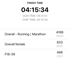 So I finished with a chip time of 4 hours 15 minutes, and my gun time was 4 hours 22 minutes.  I originally wanted sub 3:45 and Good For Age (GFA) for the London Marathon.  At the start of my journey, I really thought, if you put in all the work, you would get the result you wanted.  But as training progressed I realised that these longer distances were new to me, and I had to dial back my expectations a bit.  I didn’t want to get injured, and I read Hal Higdon’s Marathon book last year, and I knew I wanted to make it to the start line healthy and ready to run.